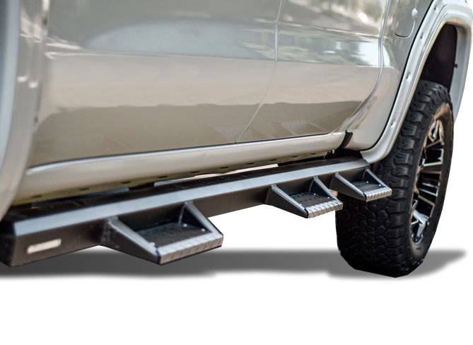 Steps conform tight to the rocker panels for additional protection