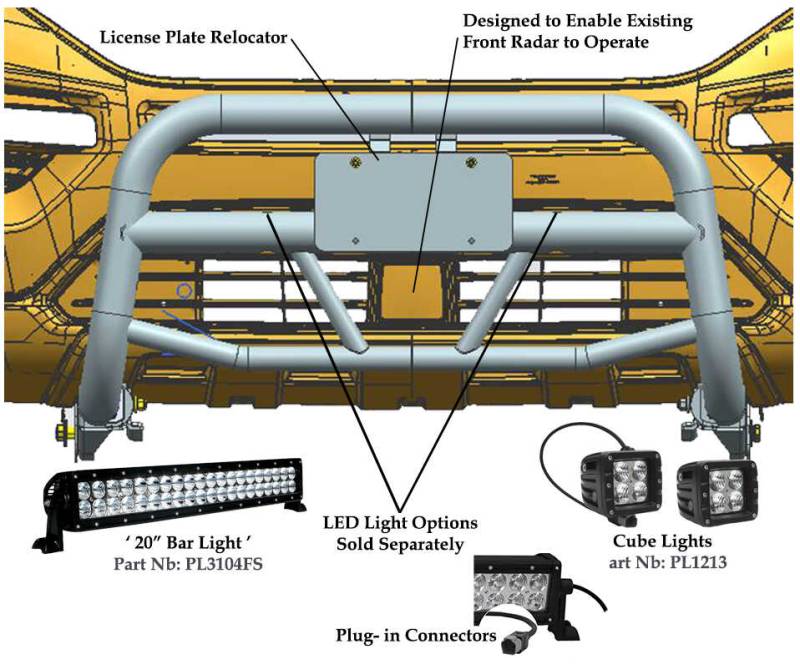 Pre-drilled holes configured to accept optional Black Horse 20 LED Light Bar PL3104FS & PL1223