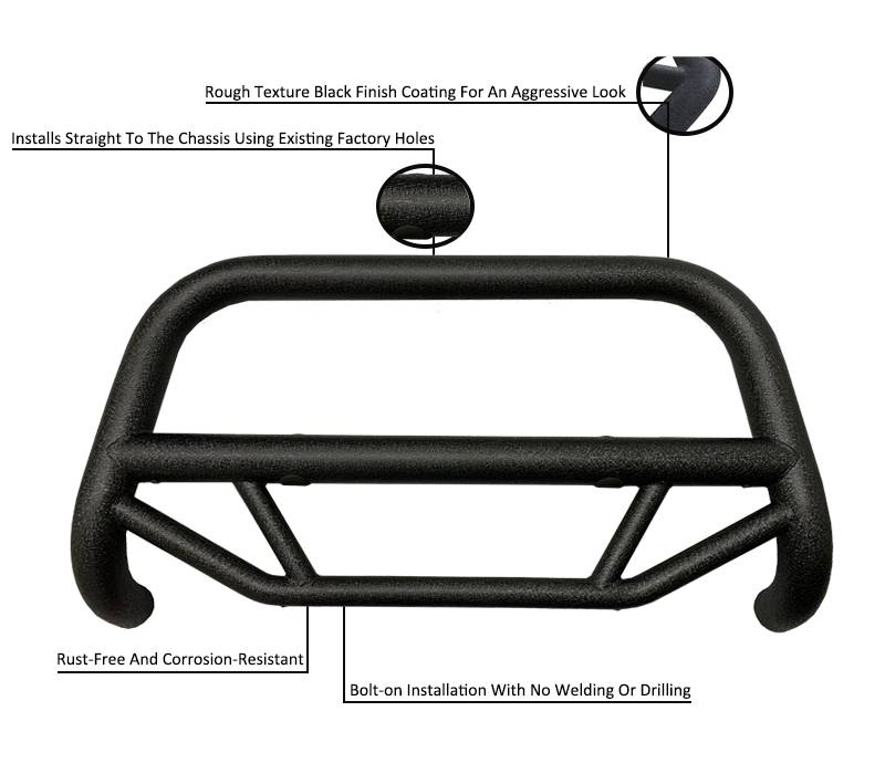 Available in black chip-resistant textured powder-coat and an e-coat undercoat for maximum rust protection.