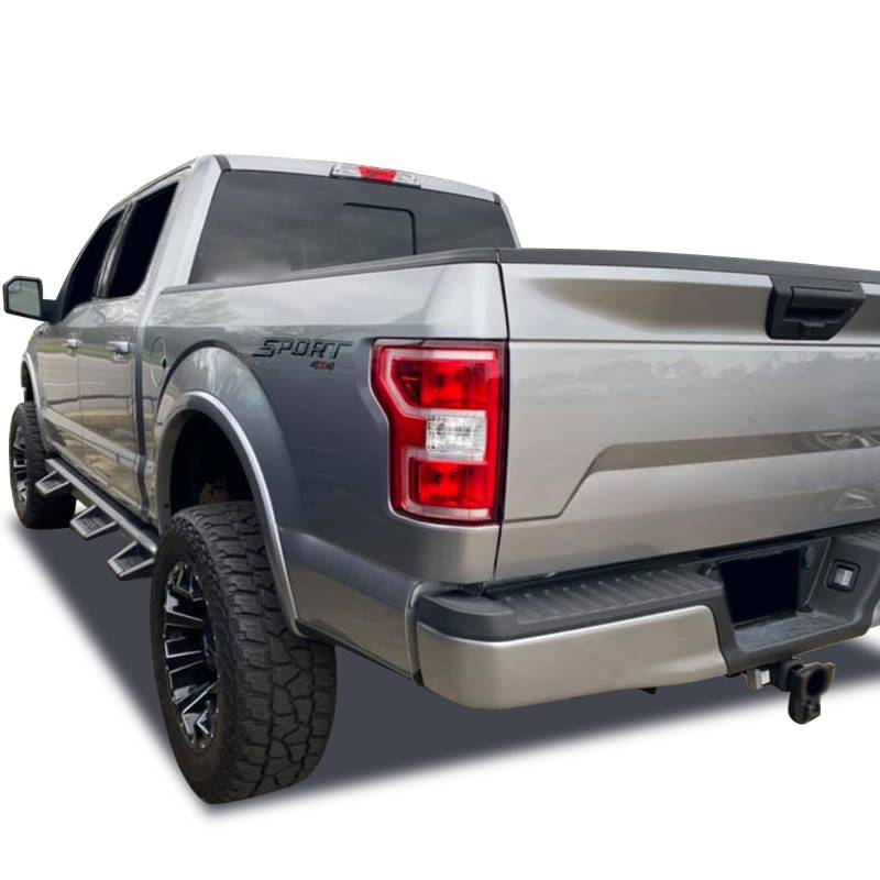 3 oversize step plates with additional step area, adding easy access to the truck bed
