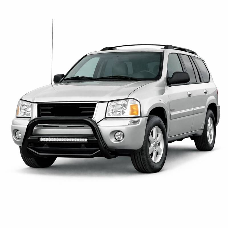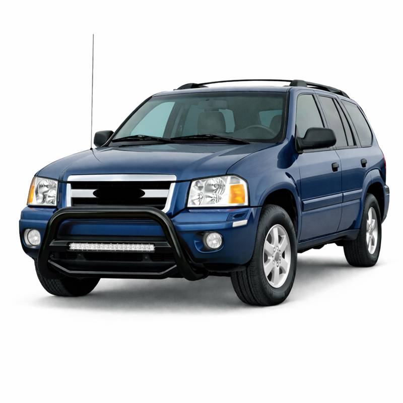 Black Powder Coated Max Beacon Bull Bar MAB-GMC3005B by Black Horse Off Road compatible with 2002-2009 Chevrolet TrailBlazer|2002-2009 GMC Envoy|2003-2008 Isuzu Ascender|2002-2004 Oldsmobile Bravada|2004-2007 Buick Rainier