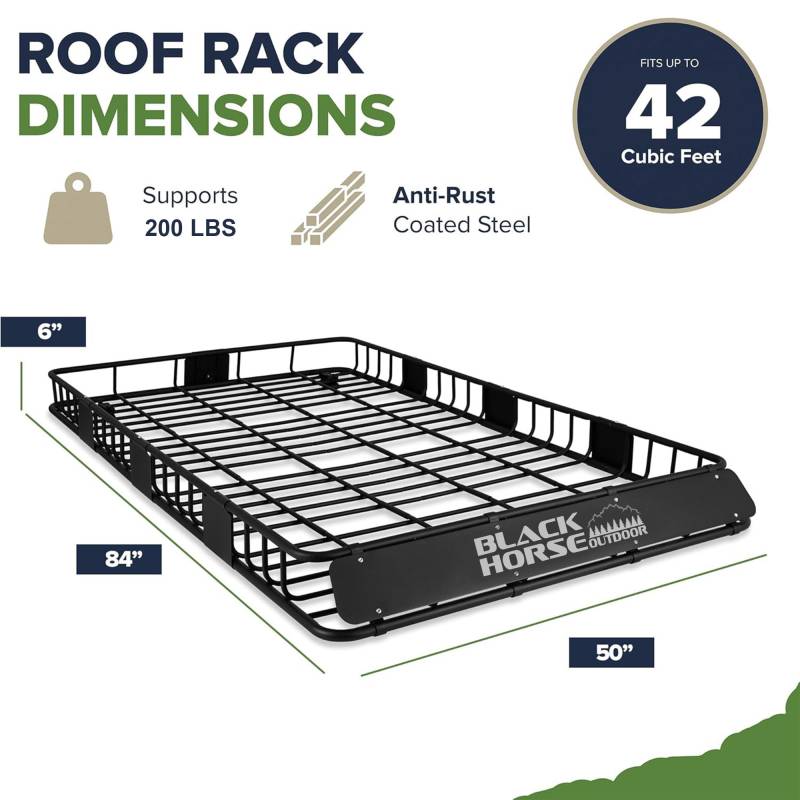Maximize Your Cargo Space: Expand your vehicle's capacity with this 200 lb roof basket, offering 84"L x 50"W x 6"H of extra space for your gear.
