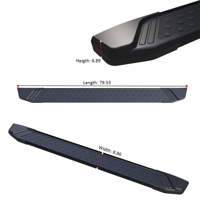 Black Horse Off Road Aluminum Storm Running Board - Features an all-black aluminum design with rubber dots