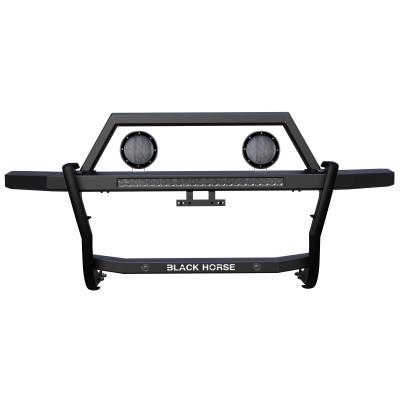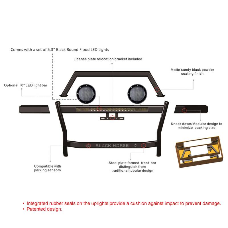 RAMBLER MODULAR Grille Guard With Set of 5.3" Black Trim Rings LED Flood Lights and 30" LED Bar Single Row-Black-2015-2022 Colorado And Canyon| Black Horse Off Road