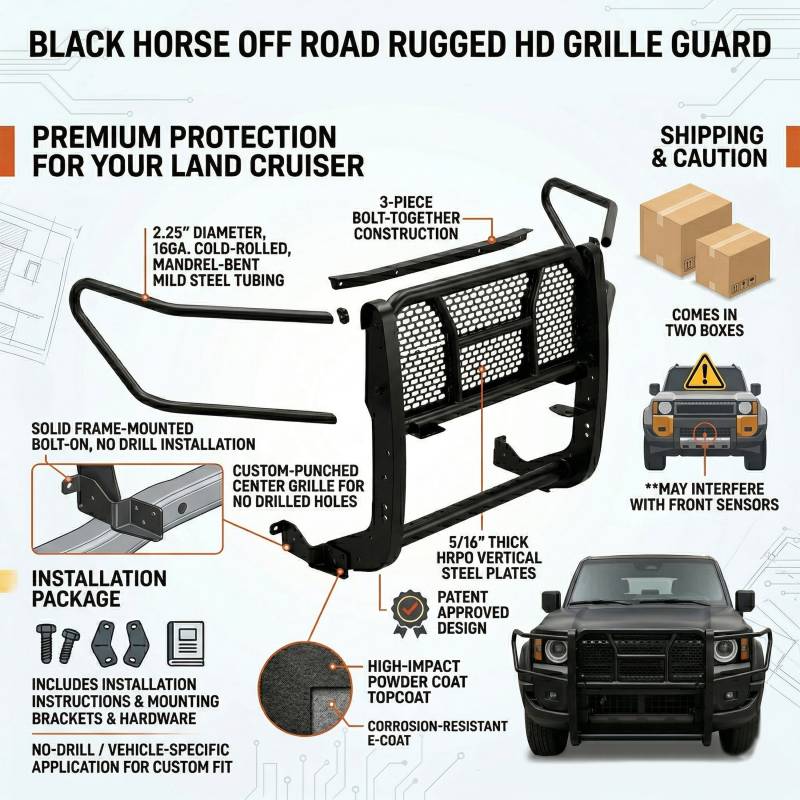 RUGGED HD Grille Guard-Black-2024-2026 Toyota Land Cruiser|Black Horse Off Road