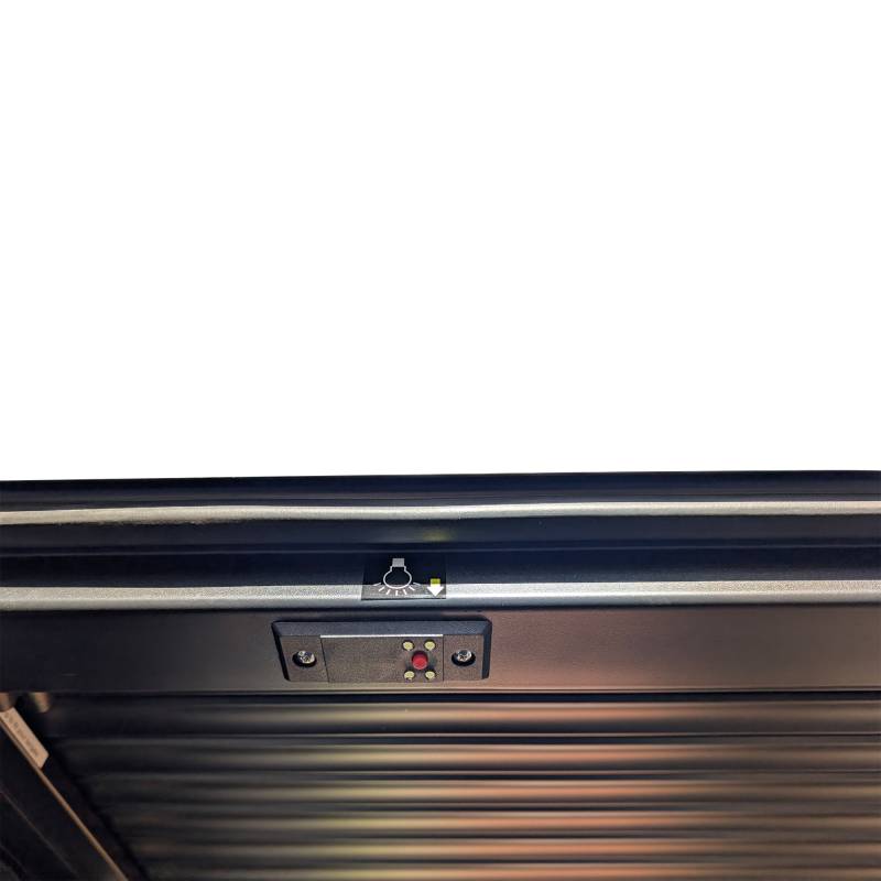 Sleek matte-black finish, flush-mounted design, compact canister, and versatile multi-position locking for flexible cargo use.