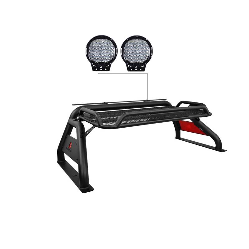 This Atlas Roll Bar is made from Black powder-coated 3 Inch steel round tubes along with the original Cargo Basket that adds structural strength to your truck and protect you and your passengers in the event of a roll over.