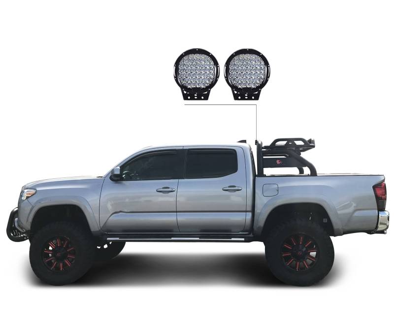 Auxiliary headlights can be mounted above the cab roofline and add heavy duty tie-down points along with the rugged styling to complement the off-road functionality and recreational activities